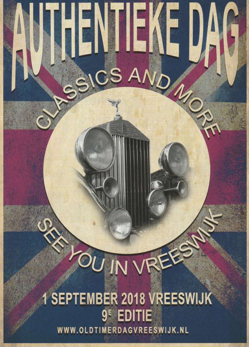 De tijd van weleer wordt tastbaar in de nostalgische sfeer van het oude schippersdorp Vreeswijk wanneer daar op 1 september 2018 de “authentieke dag Classics and More” wordt gehouden. Deze dag staat dit jaar in het teken van Groot Brittannië: Engelse merken worden dan ook extra in het zonnetje gezet. Voor deze 9e editie van dit evenement ia een prachtige route uitgezet door een fraai deel van de provincie Utrecht. Voor en na de rit worden alle deelnemende voertuigen opgesteld in de dorpskern van Vreeswijk. U kunt zich aanmelden voor dit evenement via www.oldtimerdagvreeswijk.nl