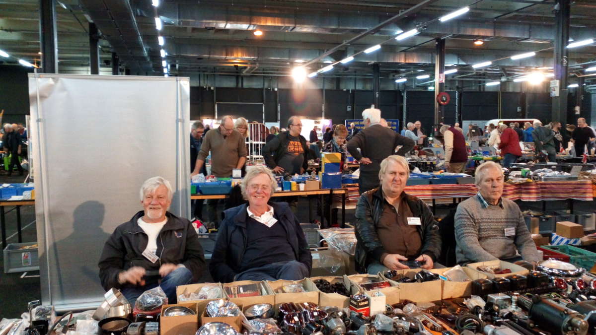 Alle leden van MGTTO werden goed geïnformeerd over de ‘leukste beurs voor fans van Britse oldtimers’ en dat resulteerde in een groot aantal tafelreserveringen voor de British Car Club Day op 28 november 2021 in Houten. Op de foto ziet u een aantal gerenommeerde clubleden achter hun koopwaar in het jaar 2019.
