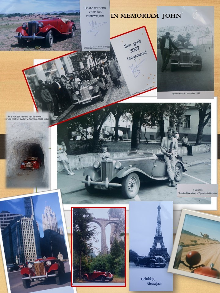 Op 21 december 2019 overleed John Bekker (1945-2019), lid van MGTTO vanaf het eerste uur. Een bijzonder mens en een markante persoonlijkheid die veel voor de club heeft gedaan en daarvoor ook het erelidmaatschap ontving. Een uitgebreid In Memoriam zal in Square Front worden opgenomen. De bijgevoegde fotocollage geeft een beeld van de vele reizen die John met zijn MG ondernam.