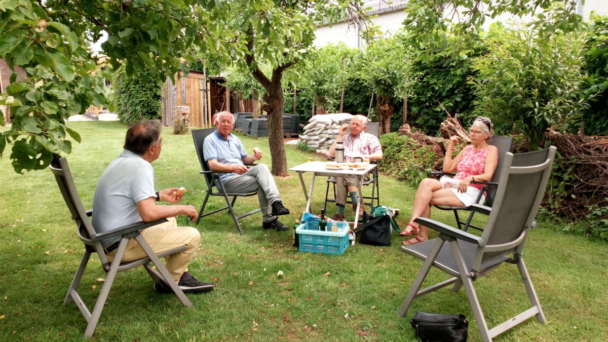En nee, niet de befaamde elfstedentocht op schaatsen waaraan de uitroep “it giet oan” altijd verbonden is. Deze keer is het van toepassing op de Betuwse Kersenrit. Die gaat op zondag 5 juli door, in afgeslankte vorm en met inachtneming van alle voorzorgsmaatregelen die door het RIVM worden voorgeschreven. Op de foto ziet u het overleg dat natuurlijk in een boomgaard plaatsvond. Binnenkort ontvangt u via e-mail een uitgebreide nieuwsbrief met de uitnodiging voor deze rit. Inschrijven voor de 10e kersenrit is verplicht, dan weten we waar we aan toe zijn. Denk er alvast eens over na.