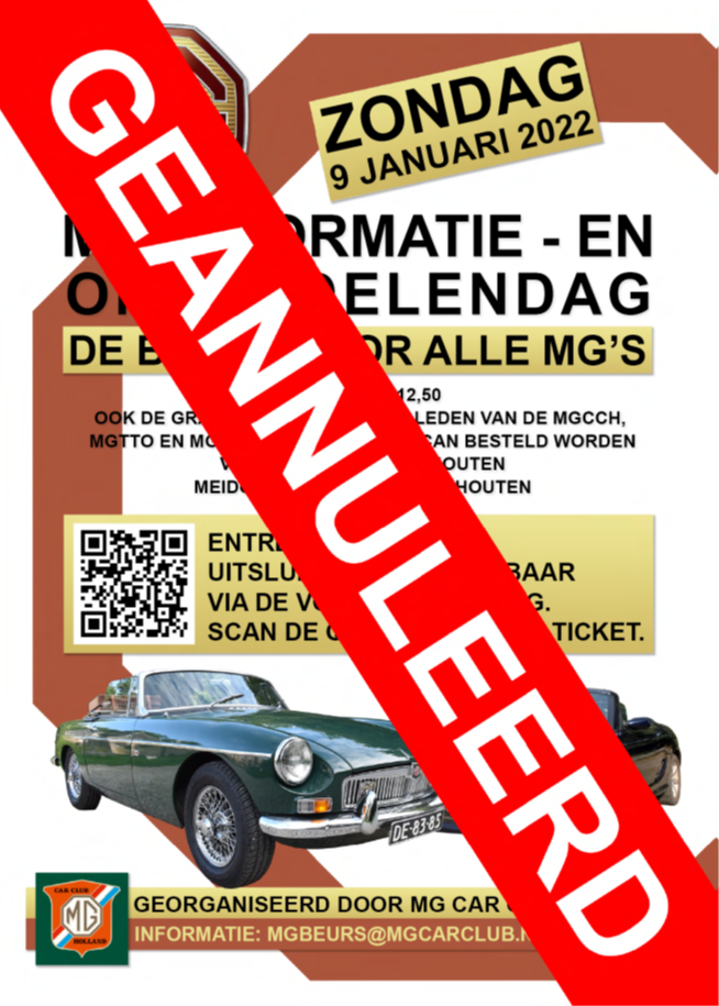 HELAAS, zo begint het bericht van de organisatoren van de MG Informatie- en Onderdelendag die op 9 januari 2022 in Expo Houtren zou worden gehouden. Gezien corona, de huidige ontwikkelingen en de maatregelen is besloten de beurs vooralsnog te annuleren. Naar een nieuwe datum wordt gezocht. Het bericht van de organisatoren kunt u in zijn geheel hier lezen.
