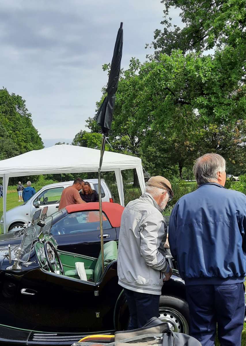 Waalwijk, zondag 19 juni 2022. Na een koude en natte start kwam toch de zon door en werd het gezellig druk bij de rode MGTTO-tent. Square Fronts vonden gretig aftrek, paraplu’s ook. Uit voorzorg, want stel je voor dat het weer zou gaan regenen. Eén van onze leden had een bijzondere constructie voor zijn paraplu aangebracht (zie de foto).