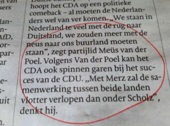 Afgelopen week vonden in Duitsland verkiezingen plaats. Daar werd in de pers natuurlijk uitgebreid over geschreven. Vergelijkingen werden gemaakt tussen ons CDA en hun CDU.